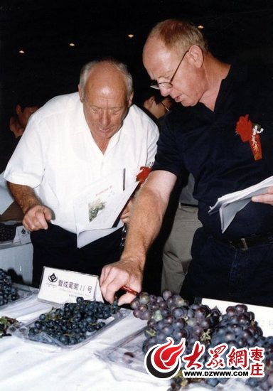 2003年8月29日,諾博(左)和漢斯在鑒評所引進葡萄的品質。(資料圖)