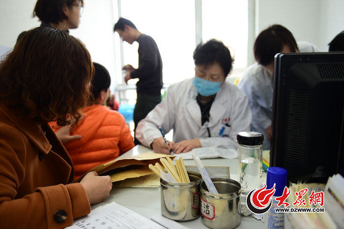 3月17日上午,山東省中醫(yī)院東院區(qū)兒科門診主任醫(yī)師的桌上,水杯里的水位只下去兩口,一直到中午12:00,她再?zèng)]得空喝過(guò)。(大眾網(wǎng)記者 王長(zhǎng)坤 攝)