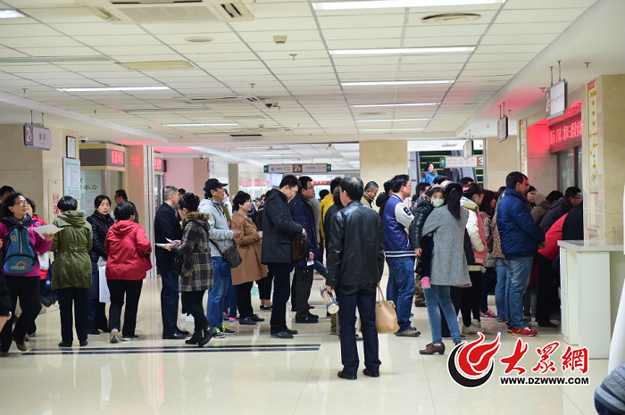 3月17日上午,山東省中醫(yī)院東院區(qū)掛號(hào)收費(fèi)處排起了長(zhǎng)龍。(大眾網(wǎng)記者 王長(zhǎng)坤 攝)