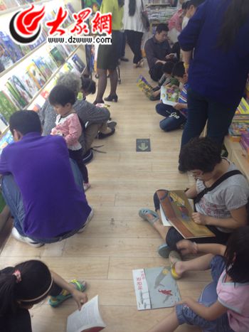 大眾網記者在泉城路、東圖和洪家樓等幾家新華書店走訪中發現,來看書買書的孩子和家長擠滿了整個兒童圖書區,而收銀臺前結賬的人卻很少,大多數喜歡看書的孩子都席地而坐抱著自己喜歡的書籍津津有味地閱讀,包裝太好,成本太高,內容卻不經看,如何取舍讓家長直撓頭,很多孩子于是選擇了“就地閱讀”。