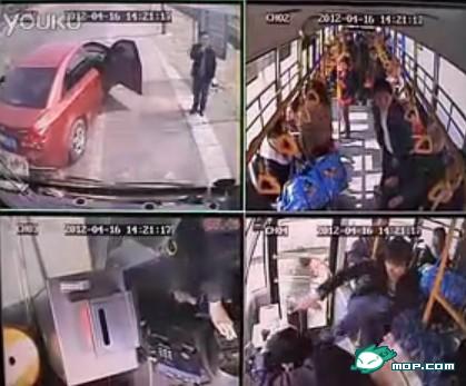 近日,大眾網(wǎng)濱州論壇出現(xiàn)一段名為《濱州瘋狂主婦肉搏公交司機(jī),據(jù)說(shuō)只為2元錢》的視頻(http://bbs.dzwww.com/thread-25978796-1-1.html),這段視頻的發(fā)生時(shí)間為4月16日14時(shí)22分,記者在視頻中看到,一輛紅色轎車突然停在了一輛正在行駛的公交車前,此后,車上的兩女一男先后上車,對(duì)公交司機(jī)進(jìn)行毆打,在長(zhǎng)達(dá)5分鐘的時(shí)間里,公交司機(jī)被打到車前門的角落里蹲下抱頭,直到一名老年人上車勸阻,打人者才停手,但被打司機(jī)剛站起來(lái),又被對(duì)方的男子扇了一個(gè)耳光。