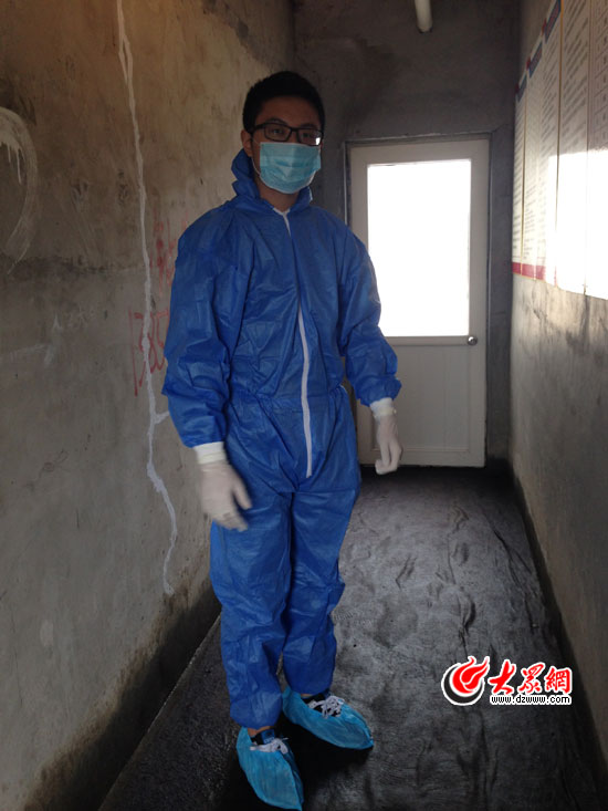大眾網記者穿好防護服,準備進入雞舍。
