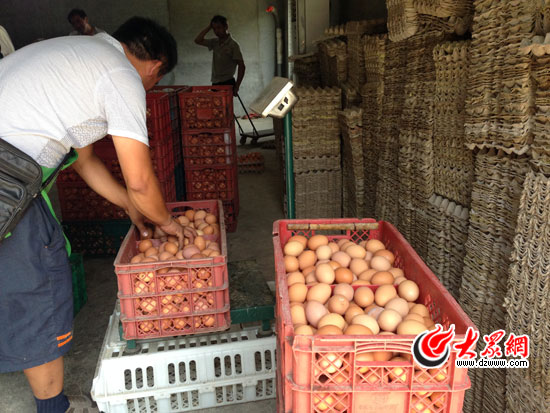 經銷商正在收購雞蛋。(大眾網見習記者 孫乘昀攝)