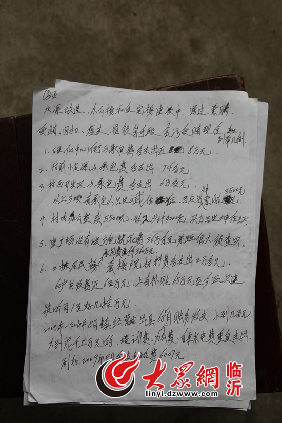 大眾網臨沂11月21日訊(記者 孔紅星)今天,有關《山東莒南:261戶村民聯名舉報支書造假賬斂財》的報道出現在網絡上,該報道稱莒南縣嶺泉鎮呂劉渰子村261戶村民聯名舉報村支書呂慶巖造假賬斂財。21日,大眾網記者來到該村進行調查,在村民代表劉志青家中見到了舉報材料。對于舉報的內容,村支書呂慶巖回應,費用支出是實際支出,都可以詳查。對于261戶村民聯名摁手印的情況,嶺泉鎮黨委經調查后認定,這些村民的手印是2007年該村對部分集體土地進行分配時,征求村民意見時村民所摁,并不是反映該村支書賬目問題時所按,對此劉志青予以承認。今年8月,莒南縣紀委已對該村的賬目問題介入調查。