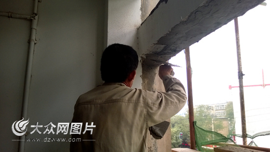 自10月11日山東濟(jì)南歷山東路2號“膠帶樓”開修至今已有10天時間。今天上午,大眾網(wǎng)記者采訪時發(fā)現(xiàn),目前該樓第一、第二單元已經(jīng)維修完畢,第三、第四單元正在做水泥窗欞拆除的收尾工作。