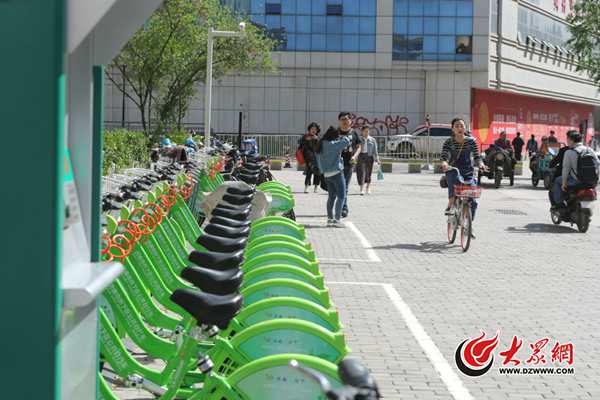 大眾網4月20日訊(見習記者 張瑪睿 攝影 王長坤 ) 兩周前,隨著濟南市歷下區的53組“小綠車”上路,濟南的共享單車市場進入了“小橙車”和“小綠車”同城PK的局面。近兩天,大眾網記者調查發現,與路上滿眼的“小橙車”相比,更省錢的“小綠車”卻很少見其身影,有的租賃點甚至兩小時內一輛單車也沒人租。多位市民向記者吐槽稱,想用“小綠車”卻找不到辦卡的網點,租賃點少還車也挺難等等。對此,濟南市歷下區停車辦相關項目負責人稱,目前“小綠車”還在試運行階段,將推出手機APP改進用戶體驗。