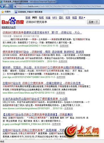 在百度中搜索濟南市BRT便民商亭可以發(fā)現(xiàn)大量出租轉(zhuǎn)讓信息