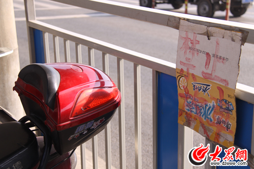 工作人員在欄桿上掛了“禁止放車”的牌子,依然無法阻止市民隨意停車.