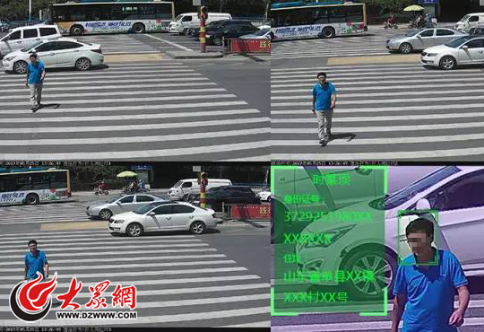 濟南交警將人臉識別技術應用到抓拍闖紅燈的行人、非機動車,并進行實名曝光。圖為一名闖紅燈行人,身份被識別為1980年出生的菏澤單縣籍男子。