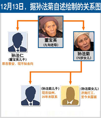 同日 記者得知孫法菊有兄妹5個,且證實外界說的20多年沒聯系子女系誤傳,董寶英的兒子孫法仁幾年還曾來看望過老人,目前不知去向。