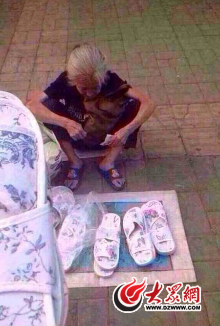 某媒體官微轉(zhuǎn)發(fā)濟(jì)南網(wǎng)友“@忘了哭991” 的微博稱:山東濟(jì)南72歲高齡骨瘦如柴的老奶奶,賣自己加工的拖鞋,一塊錢一雙。一塊錢,連半個甜瓜都買不到。大熱天的,老人一天能賣出去幾個,心酸,心疼!地點:濟(jì)南市標(biāo)山南路名酒城斜對面。有路過的小伙伴支持一下!愛心轉(zhuǎn)發(fā),幫幫老人! 該微博短時間內(nèi)轉(zhuǎn)發(fā)過萬次,留言超過4000條,引起了眾多網(wǎng)友的熱議,網(wǎng)友紛紛表示同情和憐憫。@懶懶沐小夕:“濟(jì)南的友友們,幫一下吧,賣完早回家也好。”@潮鞋NB—AJ說:“希望好心人能買! 根據(jù)微博中提供的地址,大眾網(wǎng)記者來到濟(jì)南標(biāo)山南路名酒城對面的農(nóng)村合作銀行門前,找到了網(wǎng)上說所的地點,但此時,賣鞋的老太太已經(jīng)離開,大眾網(wǎng)記者在附近多方尋找,仍沒能找到老太太本人。