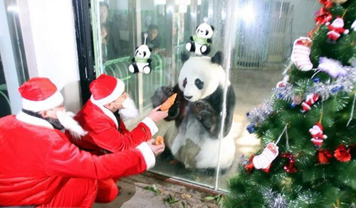 “泉泉”在圣誕節收到了圣誕老人送來的美食