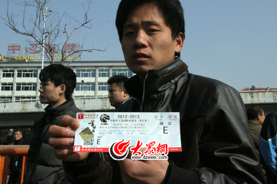 球迷小李向記者展示他排隊(duì)8小時(shí)購(gòu)來(lái)的一張球票。
