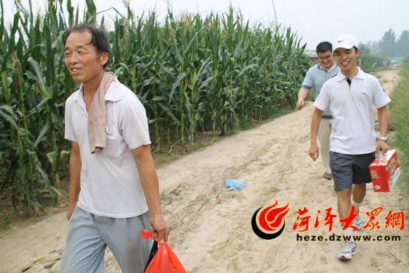 在菏澤城稍作停留,大眾網記者便與賈作勝一起趕往他的鄄城老家。由于明天就要赴山東師范大學報到,賈作勝早已統籌安排了路線。汽車越過箕山鎮,直接趕往其袁莊村的姥姥家。在兩側都是玉米地的一條土路上,久違謀面的大舅遠遠地迎上來,盡管沒有多少熱心的話,那體恤的眼神讓賈作勝體味到親情的溫暖。