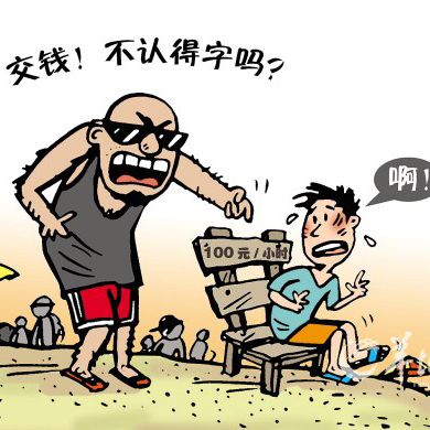 近日,一名網(wǎng)友和同學(xué)去煙臺實習(xí)時,到煙臺金沙灘“隆順海上樂園”游玩,同學(xué)在海灘板凳上坐了2分鐘都不到,“一個大哥過來就要收一百塊錢,不給錢就要扣人,旁邊站了幾個小混混似的人物”,最后給了100塊錢才脫身。原來,這個破木頭板凳居然明碼標(biāo)價“100元/小時”。