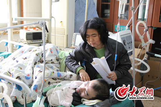 12月初,驟降的氣溫讓馬來亞患上了感冒,隨即引發(fā)肺炎,這對于身患本來就無法自主呼吸的馬來亞來說無疑是雪上加霜。隨后,馬來亞被送進青州市人民醫(yī)院,入院八天,親朋和社會好心人湊起的13000元醫(yī)療費花光,陳青春再無力支付醫(yī)療費。11日中午,因醫(yī)藥費花光,馬來亞的妻子陳青春無奈帶著丈夫醫(yī)院,回到家中。