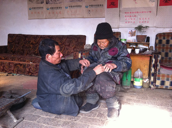 大眾網(wǎng)濰坊1月24日訊(記者 于明效 張坤)日前,網(wǎng)傳“山東濰坊52歲癱瘓男子雙手爬行照顧九旬老母,至今未上低保”之事,引發(fā)網(wǎng)友反響。1月23日,大眾網(wǎng)記者趕赴濰坊市臨朐縣辛寨鎮(zhèn)東白沙村,對(duì)此事進(jìn)行調(diào)查采訪。經(jīng)詳細(xì)了解,母子相依為命的情況屬實(shí),但是,劉馬氏一直享受五保戶待遇,劉蘭山2013年由享受低保變更為享受農(nóng)村五保戶待遇,五保戶的待遇要高于低保,并且與低保不能重復(fù)申請(qǐng),因此母子二人“未上低保”屬于誤傳。當(dāng)?shù)孛裾块T曾多次上門動(dòng)員母子二人住敬老院,但是他們并不同意。