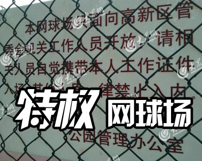 今天下午,淄博網友杜女士向記者發送了一張她在火炬公園內拍攝的照片:一個白色的牌子被掛在鐵絲網內,上面以紅色字樣寫著“本網球場只面向高新區管委會機關...