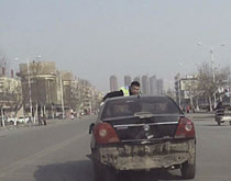 無證司機開車頂行交警3公里 司機:當時心慌了