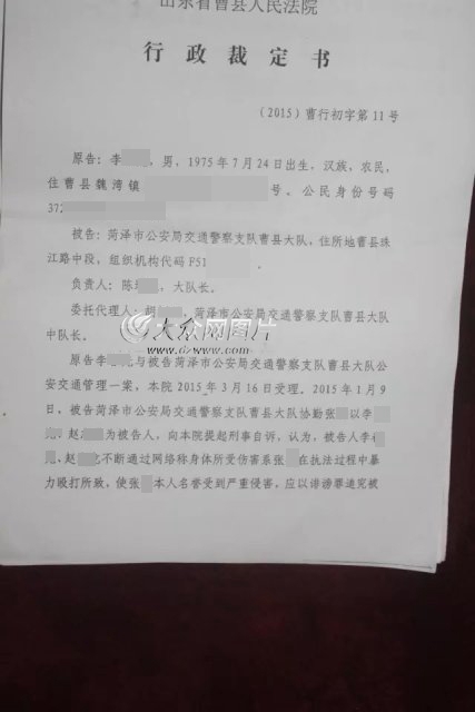 之后,李某繼續發帖控訴曹縣交警,直到被告上法庭。