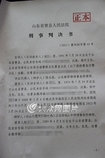 2015年1月13日,李某網帖所述的打人者協勤張某,以個人身份向曹縣人民法院提起刑事自訴,以誹謗罪狀告李某和幫助李某在網上發帖的趙某。