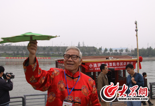 得知能參加小清河首航,高長祿特地穿上了新買的紅色唐裝,帶上快板,拿上二人轉(zhuǎn)手絹,早早來到碼頭,他說,今天要邊走邊看變創(chuàng)作,“把小清河的美全給夸出來!”
