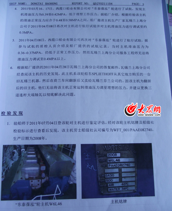 大眾網記者采訪了西霞口船業有限公司總經理王強。王強介紹說,舊發動機主機賣不了幾個錢,但船廠按照與西特福所簽訂的協議,購買了兩套價格在301.93萬歐元(合人民幣3000萬元)的主機,在購買時,單從外觀根本就看不出來是否是舊機翻新,只有船造好試航時才能發現。然而此時,距離購機已經過去4年有余,按照協議,購買發動機的款項早已經全額付清。這樣一來,巨大的市場差價,使得對方能從中獲得高額的利潤。