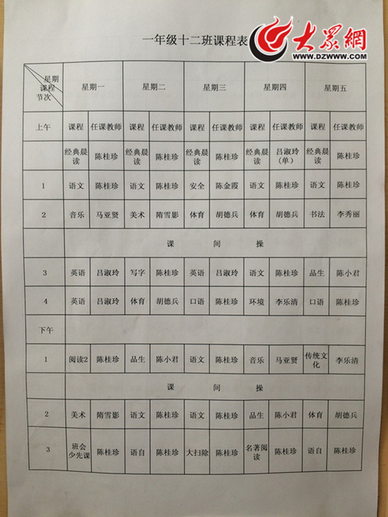 10月27日,在學校的一年級教室課程表上,大眾網(wǎng)記者看到,國家課程數(shù)學課已經(jīng)被取消了。