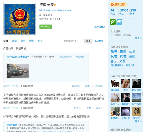 大眾網濟南8月29日訊(記者 曹亮)“濟南公安”微博救助感情受挫的“直播自殺”的女網友,在網上受到了熱烈的討論。在“濟南公安”的微博里直播解救過程的十條微博被轉發1100次,留言超過了1500條。而同樣在本次解救事件中起到關鍵作用的“濟南公安公共交通分局”的微博也備受關注,網友留言和轉發微博數百條。記者觀察到,營救“直播自殺”網友的帖子仍然不斷有網友留言。在這些網友中有不少旅居海外的,他們盛贊濟南公安反應迅速。