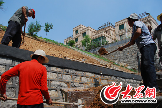負(fù)責(zé)鳳鳴山莊物業(yè)工作的濟(jì)南鑫涌物業(yè)管理有限公司經(jīng)理田勇峰告訴記者,物業(yè)公司27日、28日對大坑進(jìn)行運(yùn)土回填、夯實(shí),29日,又對被破壞的護(hù)坡?lián)跬翂M(jìn)行修復(fù),為了填補(bǔ)這個大坑,光自卸卡車運(yùn)載渣土就運(yùn)了至少50趟,使用了近200多方土,石料也有20多方,另外還動用的,裝載機(jī)、挖掘機(jī)等工具。“光填坑我們就花了兩萬多塊錢了,這還不算人工費(fèi)。”