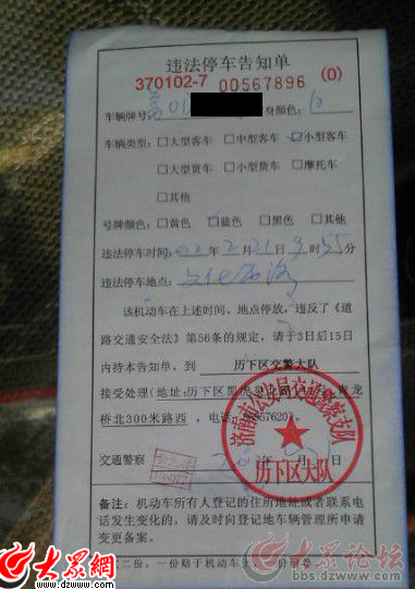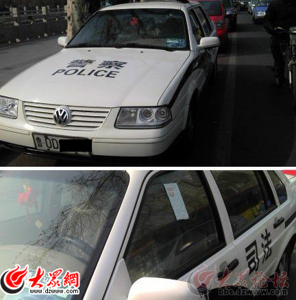 網曝濟南現“最牛交警” 給魯O牌警車貼罰單