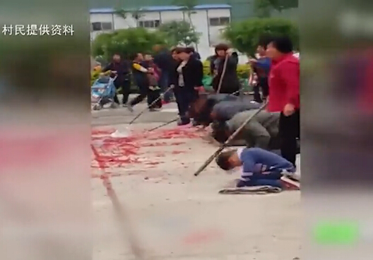 村民跪拜“轉(zhuǎn)運石”視頻截圖。(圖片來源于網(wǎng)絡)