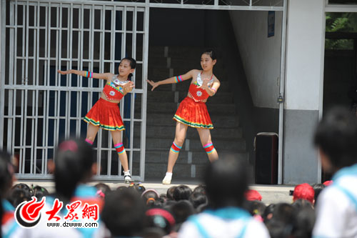 山東師范大學(xué)附屬小學(xué)的同學(xué)表演節(jié)目《爬坡上坎》