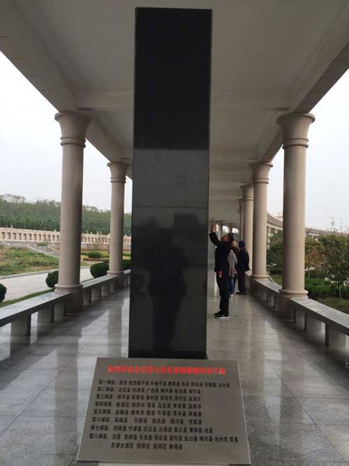 這里有一面全世界最震撼的墻,無數的大理石碑集合成四塊巨大的碑林墻,墻體兩側,銘刻著濱州老鄉們能夠查找到的五萬五千三百零八個烈士的名字。導游的小姑娘告訴我們,這份名單肯定不全,說不定翻一倍不止,但是我們條件有限,那么動亂的年代,也就只收集到了這些人的名字、職務、犧牲地。說著,她用手指著不遠處彎腰看碑文的一個老大爺,說這地方經常有人前來祭奠。