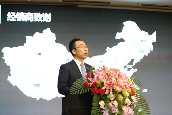 浦林成山(山東)輪胎有限公司總經(jīng)理車寶臻向經(jīng)銷商致謝并發(fā)表講話。