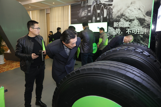與會經(jīng)銷商在參觀浦林成山展示的各種輪胎產(chǎn)品。