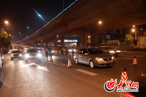 濟南市交警支隊在二環東路高架和平路下交口設立檢查崗