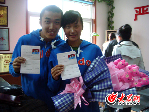 “我們今天中午不用陪雙方父母,他們天天都能見面,常常一起吃飯!惫廛娬f,他們領完證后,還要去參加朋友在11點11分舉行的婚禮。兩人都是話不多的人,但舉手投足之間卻充滿了默契。
