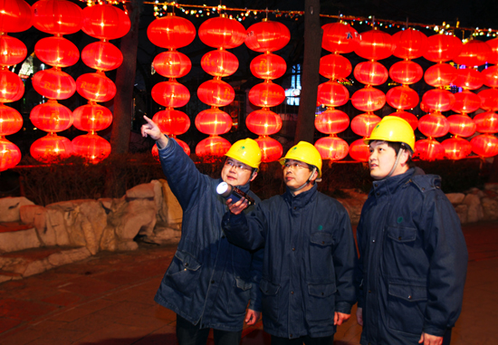 讓燈會的每盞燈都亮起來!隨著趵突泉園林的擴建,趵突泉的花燈規模也越來越大,這一任務也變得愈發艱巨。已經參加過一屆花燈保電任務的曹杰飛說:“為了確保燈會期間的花燈都亮,今年濟南供電公司比去年提前半個月就開始著手準備燈會保電方案,對重點部位特別維護,重點線路特別巡檢,確保燈會期間用電萬無一失。”