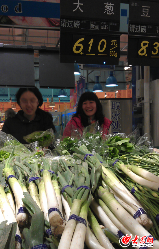 隨后,在歷下大潤發超市,記者同樣發現,前天零售價7.8元/斤的章丘大蔥,現在應降至6.1元/斤,在眾多蔬菜中降幅較大。同時,在章丘收購大蔥的河南商人張經理也告訴記者,隨著天氣轉暖,北方大蔥的大量上市將繼續拉低大蔥的價格,目前一級批發市場的價格已經出現了回落。