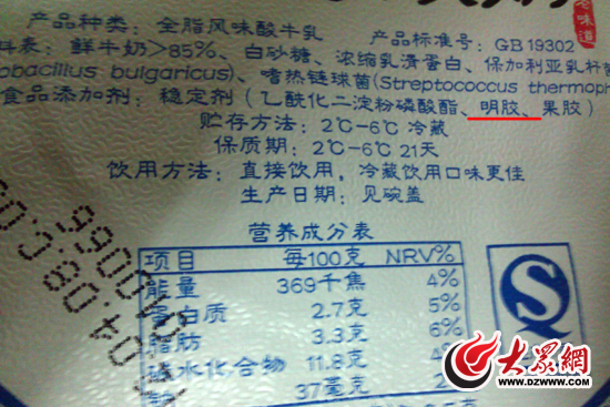 許多品牌的老酸奶添加劑一欄都明顯標有“明膠”。