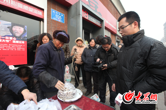 為了獻一份愛心,凌律師特意坐車從舜耕山莊來到了文化東路,下午2點就等在了六乃喜門口。“我在微博上私信@大眾網了,不過怕來晚了買不到,還是自己跑一趟。”他說,最初知道“山貨大爺”是通過微博,這次是從@大眾網 上看到大眾網發布的“山貨團購”愛心活動。“我覺得這活動十分好,就想過來支持一下‘山貨大爺’。正好今天下午有時間,就趕過來了。”