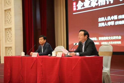 本次論壇由濟(jì)南儒商文化研究會(huì)、濟(jì)南市工商聯(lián)、濟(jì)南市府學(xué)文廟管理處聯(lián)合主辦,泰岳爨文化交流中心、山東省人文藝術(shù)研究院、智匯品質(zhì)生活聯(lián)盟、山東紀(jì)年文化傳媒有限公司、濟(jì)南社會(huì)組織聯(lián)合會(huì)協(xié)辦。特邀山東省工商聯(lián)副主席、濟(jì)南市工商聯(lián)副主席、玫德集團(tuán)有限公司董事局主席孔令磊擔(dān)任演講嘉賓,論壇主題為“企業(yè)家精神與企業(yè)的創(chuàng)新發(fā)展”。 儒商文化研究會(huì)會(huì)長(zhǎng)、山東大學(xué)管理學(xué)院教授李軍主持論壇。