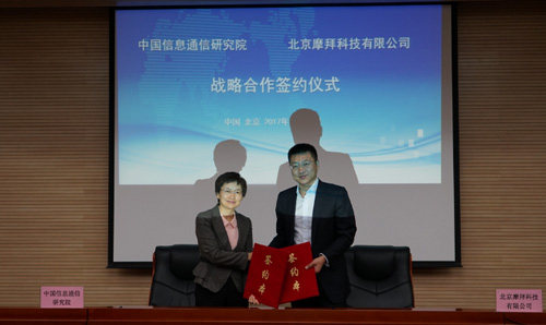 大眾網濟南11月28日訊 11月27日,全球智能共享單車首創者與領導者摩拜單車與中國信息通信研究院(簡稱“中國信通院”)在北京簽署戰略合作協議,雙方將在物聯網、大數據、人工智能等領域展開全方位合作,共同發起制訂一系列共享單車標準,指引共享單車行業的規范健康發展。