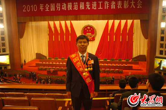 2010年4月27日,王欽峰在人民大會堂全國勞動模范和先進工作者表彰大會上留影。