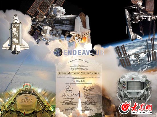 [提要] 今天,山東大學在濟召開新聞發布會宣布:因為在國際重大科學計劃——阿爾法磁譜儀(AMS)項目中作出基礎性貢獻,來自該校的中國科學家程林教授新進獲得了美國宇航局的特別嘉獎。同時,美國宇航局將一塊在太空中隨“奮進號”航天飛機飛行了16天的AMS標識作為珍貴紀念贈送給了程林教授。