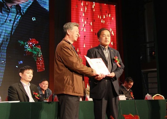 中國(guó)書畫院山東分院院長(zhǎng)王金水(右)接受院長(zhǎng)聘書。