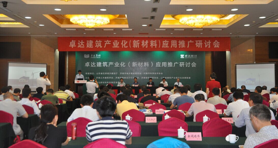 6月12日上午,卓達集團建筑產(chǎn)業(yè)化(新材料)應(yīng)用推廣研討會在濟南舉行。來自專業(yè)協(xié)會、相關(guān)政府機構(gòu)及全國的建筑商、建材商和房地產(chǎn)開發(fā)商等企業(yè)代表100余人共同探討住宅產(chǎn)業(yè)發(fā)展前景,分享卓達新材發(fā)展成就。本次研討會由濟南市土木工程協(xié)會、濟南市綠色建筑協(xié)會、濟南市住宅產(chǎn)業(yè)聯(lián)盟共同主辦,山東省住建廳、濟南市城鄉(xiāng)建設(shè)委員會,濟南市科學技術(shù)協(xié)會專家學者專程參與研討會。