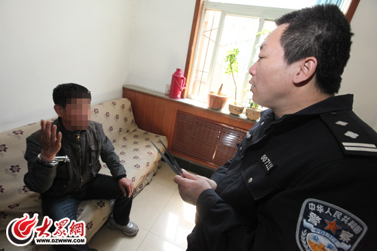 公交分局第五派出所副所長蘇峰用啞語與聾啞盜竊犯罪嫌疑人交流,審問作案細(xì)節(jié)。(記者 曹亮 攝)