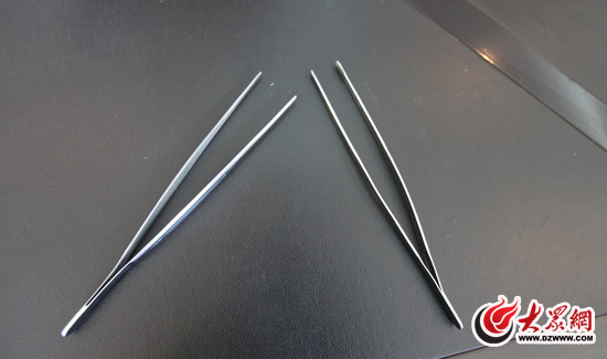在濟(jì)南公安公共交通分局第五派出所的會議桌上,一把30厘米多長的鑷子映入眼簾,第五派出所副所長蘇峰告訴記者,這把鑷子就是三人扒竊團(tuán)伙的常用工具。鑷子頭上被涂了約半厘米長的黏膠,嫌疑人看到獵物后,瞄準(zhǔn)目標(biāo),稍一用勁,不到兩秒鐘就輕而易舉地將錢包、手機(jī)等物品夾出,夾出后迅速轉(zhuǎn)移或塞至腋下。10日中午在彩石集市上看到一女青年口袋外露出一條手機(jī)鏈,不到兩秒就夾了出來,民警通知受害人時,女孩還不知何物被盜。